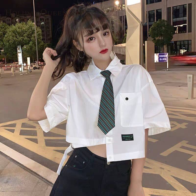 HolidayQueen Girl Summer White Shirt Women's Design Sense Niche Top Summer Short-sleeved ShirtWomen's clothing HQP0903